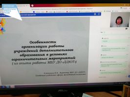 В первой части мероприятия свой опыт работы организации образовательной деятельности в условиях дистанционного обучения представили Федулова О.В., заместитель директора МБОУ «Лицей», Фогель Е.Ю., заместитель директора МБОУ «СОШ № 18», Ключкина И.Я., директор МБУ ДО «ДДЮТ».