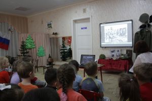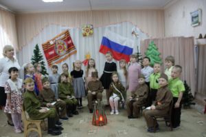 Продолжила тематический день литературно-музыкальная гостиная «Этих дней не смолкает слава!», подготовленная, музыкальным руководителем Демидовой Екатериной Николаевной и воспитателем Ерохиной Ольгой Александровной. Открыли гостиную педагоги МБДОУ песней «Вьется в тесной печурке огонь». Продолжили концерт, воспитанники с одноимённой театрализованной композицией «Вьется в тесной печурке огонь». В литературной гостиной прозвучали стихотворения о войне писателя и поэта С. Михалкова. Семья Агеевых, папа и дочь Ангелина, прочитали стихотворение: «Разговор папы с дочкой…».
