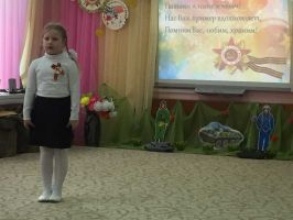 С трепетом и чувством дети читали стихи известных авторов: Т.В.Бокач «О войне дети знают по книжкам», Ира Артеменко «Письмо солдата», Е.А. Лемталь «Маленькие дети войны», М.В. Киселёва «Воспоминания о войне», С. Е. Кожуховская «Слава героям».