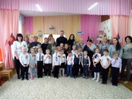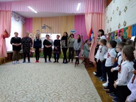 В исполнении музыкального руководителя Черной Ольги Александровны была исполнена песня «Огонек», а в исполнении детей, сотрудников и родителей прозвучала песня «Катюша».