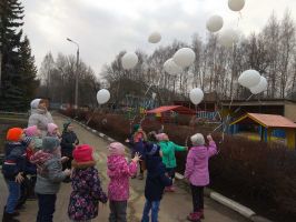 В память о погибших в Великой Отечественной войне в небо были выпущены белые шары.