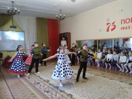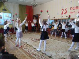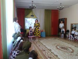 Всех тронули песни "И всё о той весне" в исполнении Давыдовой Екатерины, сестры воспитанницы старшей группы Филюшкиной Алины, песня "Землянка" под гитару в исполнении Щербаковой Ирины Сергеевны, мамы воспитанницы подготовительной группы. Песню "Землянка" подпевали все гости и дети. Прозвучала песня "Катюша" в исполнении воспитанницы Кузьминой Аси и её мамы Аллы Викторовны.