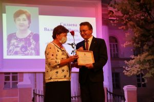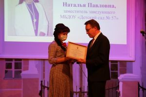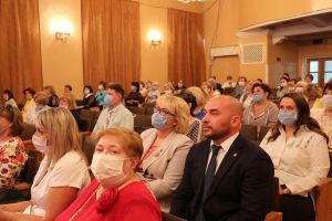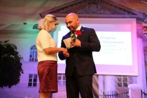 По сложившейся практике Алексей Алексеевич Бирюлин, глава администрации муниципального образования город Новомосковск, и Анатолий Евгеньевич Пророков, глава муниципального образования город Новомосковск, приветствовали собравшихся в зале педагогов и руководителей и вручили награды Министерства просвещения Российской Федерации.