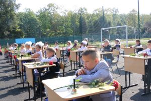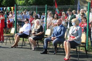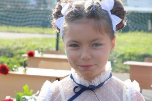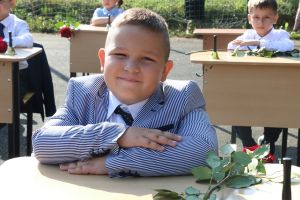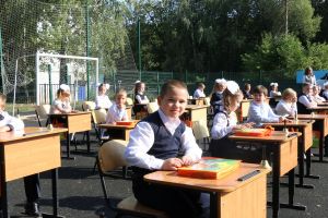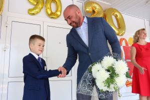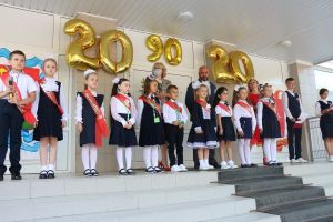 В школе № 5 сегодня было очень шумно и весело. Малыши сразу смогли почувствовать себя полноценными учениками: на спортивной площадке, где проходила линейка, для них были расставлены школьные парты и разложены школьные принадлежности – подарок администрации муниципального образования.