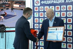 Сегодня в Ледовом дворце «Юбилейный» руководитель аппарата администрации муниципального образования Александра Соколова совместно с генеральным директором ООО«Полипласт-Новомосковск» Александром Ковалевым в торжественной обстановке вручили сертификаты на инвентарь для занятий флорболом образовательным организациям нашего города.