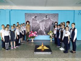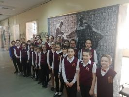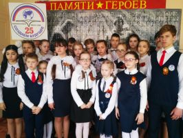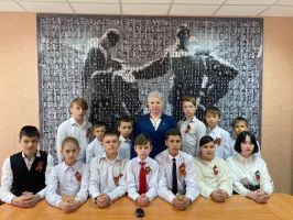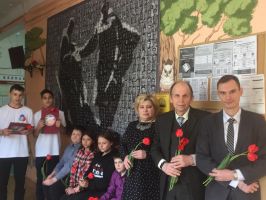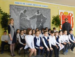 Ранее учащиеся новомосковских школ собирали фотографии ветеранов Великой отечественной войны, из которых был собран, распечатан и передан в школы баннер.