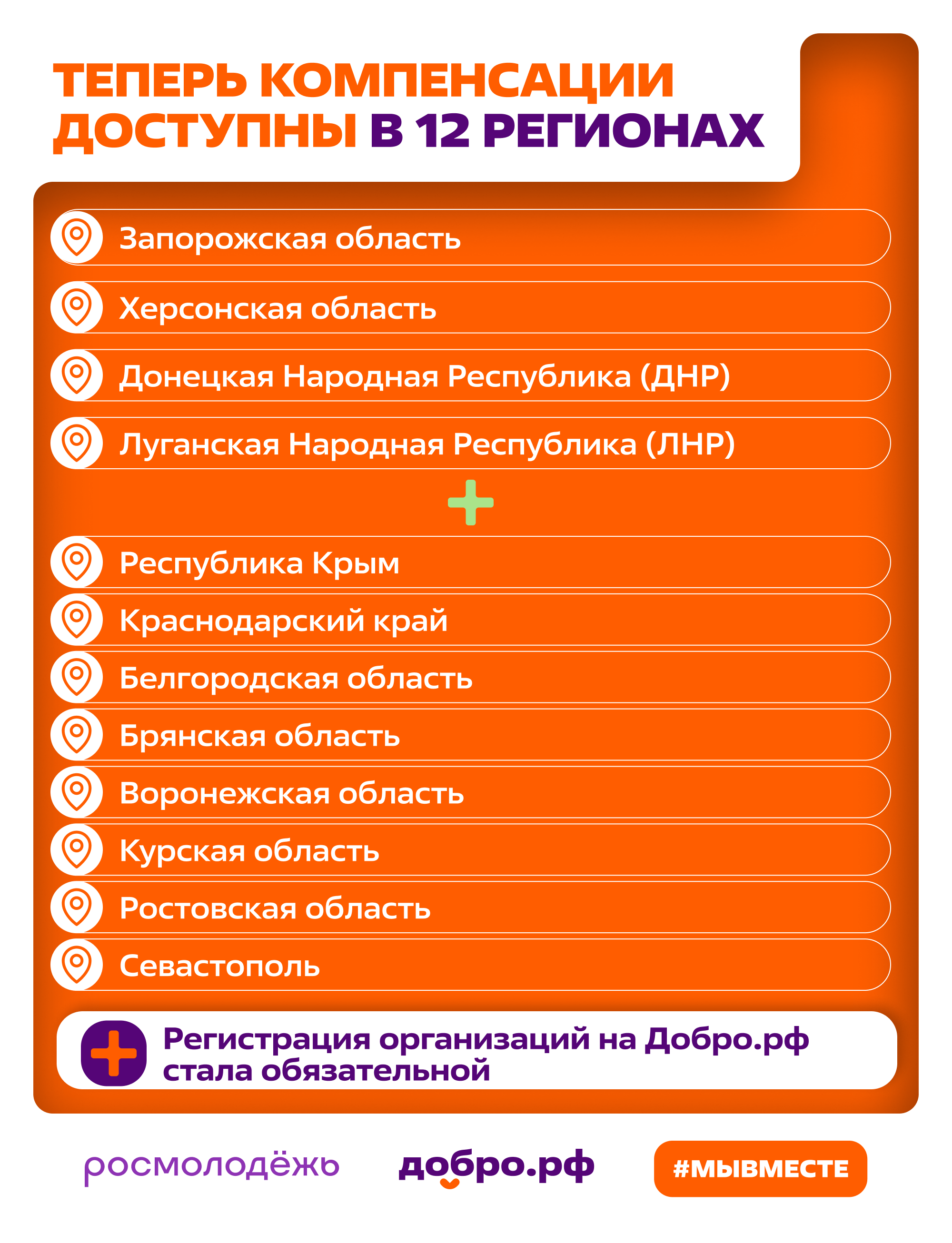 Еще одно обновление Порядка касается расширения географии гуманитарных миссий. По указу Президента августа прошлого года, гарантии должны распространиться уже не на 4, а на 12 регионов и охватить помимо Донбасса всё приграничье. В этих целях в порядок включены уже ДНР, ЛНР, Запорожская, Херсонская, Белгородская, Брянская, Воронежская, Курская, Ростовская области, а также Краснодарский край, Республика Крым и Севастополь.