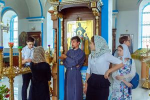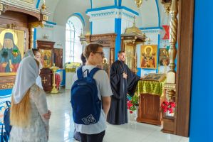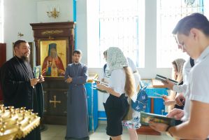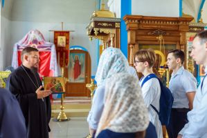 Вчерашние школьники встретились с настоятелем Свято – Казанского храма села Гремячее, иереем Николем Мельниковым. Для гостей была проведена экскурсия. Настоятель показал редкие иконы и рассказал истории их чудесного появления в храме. Выпускники смогли увидеть Евангелие, которому более 100 лет и которое по сей день участвует в церковных таинствах. Ребята бережно перелистывали страницы и с трепетом пытались прочитать строки Священного Писания. На память выпускникам иерей Николай Мельников подарил книги профессора Московской Духовной Академии А. И. Осипова.