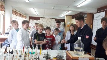 В 2019 году наши юные химики Амелин Данила и Корзиенко Никита с преподавателем Костылевой Еленой Игоревной участвовали в Весенней олимпиадной школе МГУ, организованной Фондом Андрея Мельниченко, где учились решать задачи повышенного уровня сложности, практически выполняли задания лабораторного практикума.