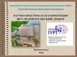 19 мая 2018 года в актовом зале Центра образования № 4 прошла первая научно-практическая конференция «Исследовательский дебют». Конференция была посвящена 150-летию открытия Периодического закона Д. И. Менделеева (по решению Генеральной Ассамблеи Организации Объединенных Наций 2019 год объявлен Годом Периодической таблицы). На конференцию были представлены 11 исследовательских проектов учеников 7-9 классов школ города. Все работы были интересны, сопровождались содержательными презентациями, демонстрацией химических опытов, что вызывало восторг зрителей. Решением жюри Диплом победителя получил Корзиенко Никита, ученик 8 класса Лицея «Школа менеджеров» за проект «Вторая жизнь денег».