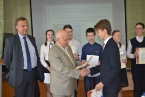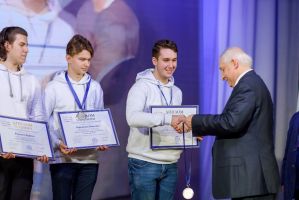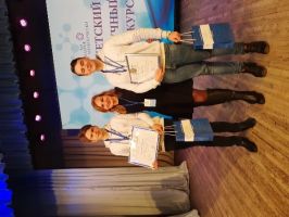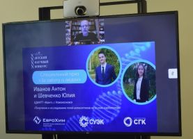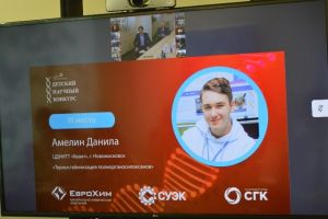 В номинации "Исследовательский проект" 1 место у Корзиенко Никиты (проект «Вторичные полимеры – сырьевой и энергетический ресурс»)., 3 место - у Амелина Данилы («Термостабилизацию полиорганосилоксанов»), и специальный приз Фонда Андрея Мельниченко - у Иванова Антона и Шевченко Юлии («Получение и исследование гелей-антисептиков на основе карбополов»).