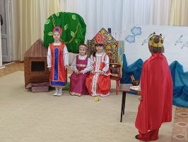 Воспитанники детского сада представили драматизацию отрывков из произведений «У Лукоморья дуб зелёный», «Сказка о царе Салтане, о сыне его славном и могучем богатыре князе Гвидоне Салтановиче и о прекрасной царевне Лебеди», «Сказка о рыбаке и рыбке», «Сказка о мёртвой царевне и о семи богатырях».