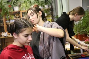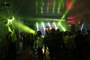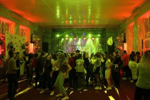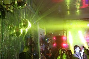 «Дискотека века» прошла в необычной локации: в спортивном зале школы, который к празднику сильно преобразился. Окна и стены оформили блестками, в баскетбольных сетках вместо мячей появились дискоболы, а в центре зала установили профессиональную концертную сцену со светодиодными приборами и диджейским пультом. Готовиться к дискотеке школьницам помогали профессиональные стилисты: наклеивали блестки, делали макияж и прически.