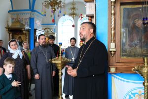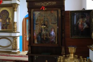 Далее представители системы образования, культуры и Русской православной церкви отправились в Свято-Казанский храм села Гремячее. Настоятель храма рассказал о истории его создания и особенно чтимых иконах храма.