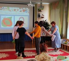 Рогачева Марина Игоревна, музыкальный руководитель МБДОУ «Детский сад комбинированного вида № 52», провела упражнение «Улыбнись, обнимись, подружись…», направленное на сплочение коллектива и создание доброжелательной атмосферы в работе методического практикума.