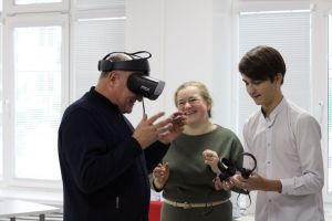 Руководитель центра «Точка Роста» Плиско Елена Юрьевна: «Мы сравнительно недавно стали в полном объёме использовать виртуальный шлем именно в образовательном процессе. Технологии не стоят на месте, и с помощью государственных программ поддержки образования стали образовываться и разрабатываться целые сообщества и платформы, на базе которых есть возможность учиться, внедрять виртуальную реальность в наш образовательный процесс».