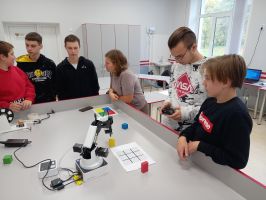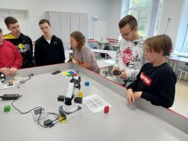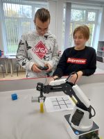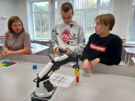 «Ребята делают первые успехи и уже самостоятельно могут управлять роботом DOBOT различным способами. В этот раз они использовали джойстик», – говорит педагог дополнительного образования Вера Александровна.