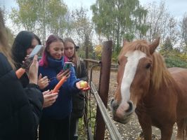 13 октября ребята приехали в детский оздоровительно-образовательный центр, чтобы познакомиться с лошадкой «Магия», которая будет находится под патронажем волонтеров школы.