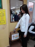 После этого учащиеся разошлись на практические площадки. Одна группа отправилась на мастер-класс по изготовлению ватно-марлевых повязок для защиты органов дыхания от химического отравления, другая группа совместно с инспектором МЧС в школьном дворе училась обращаться с разного вида огнетушителями.
