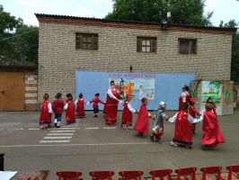 Ребята с восторгом встречали гостей праздника, Гусляра и Скомороха. Воспитанники выступали в роли князя Владимира, Добрыни, княжеских послов, читали стихи, играли в русскую народную игру «Карусель».