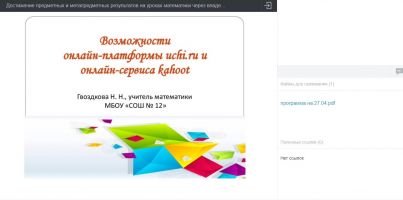 Учитель математики Гвоздкова Н.Н. представила опыт работы по использованию возможностей онлайн - платформы uchi.ru и онлайн - сервиса kahoot для достижения предметных и метапредметных результатов на уроках математики, осветила санитарные требования по использованию компьютера в учебной деятельности.