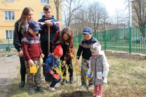 Третий год волонтеры-старшеклассники учат младших детей основам добровольчества. Старшие ребята проводят развлечения у малышей, дарят игрушки, вместе учатся озеленять территорию детских садов, высаживают цветы и деревья, вместе участвуют в тематических акциях и общественных мероприятиях, помогают в уборке территории, в изготовлении и ремонте различных предметов для игр, мастерят и дарят поделки к различным праздникам.