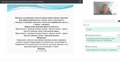 В рамках вебинара Палаткина Л.Т. провела практико-ориентированную консультацию по теме «Интегрированные задания как средство реализации межпредметных связей на уроках географии», на которой педагоги освоили приемы интеграции географии с другими предметами через использование интегрированных заданий.