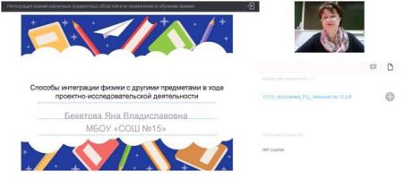 Бекетова Я.В., учитель физики МБОУ «СОШ № 15», провела практикум «Способы интеграции физики с другими предметами в ходе проектно-исследовательской деятельности». В рамках занятия участники вебинара освоили эффективные приемы интеграции физики с учебными предметами при организации проектно-исследовательской деятельности.