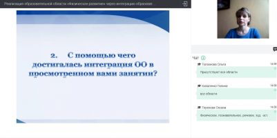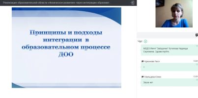 Коржова О.В. раскрыла основные принципы и подходы интеграции в образовательном процессе ДОО; представила опыт работы по использованию разных способов интеграции образовательной области «Физическое развитие» с образовательными областями «Социально-коммуникативное развитие», «Речевое развитие», «Художественно-эстетическое развитие».