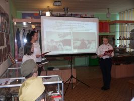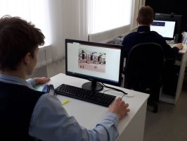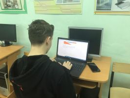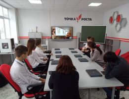 С учётом сложившейся эпидемиологической обстановки учащиеся 8 класса находились в музее, а девятиклассники смотрели мероприятие в онлайн-режиме в аудитории «Точка роста».