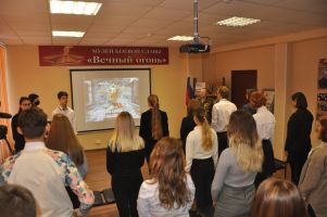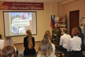23 ноября 2020 г. в рамках года Памяти и Славы в музее «Вечный огонь» МБОУ «Центр образования № 23» состоялся живой урок «Служители Отечества – солдаты всех времен». На встрече присутствовал ветеран Чеченской войны - Шадчин Валерий Анатольевич.