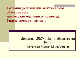 Поделилась опытом работы по созданию условий для максимально объективного проведения оценочных процедур Астахова М.М., директор МБОУ «Центр образования № 1».