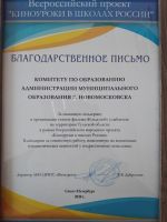 За оказанную поддержку в организации съемок фильма комитет по образованию администрации муниципального образования город Новомосковск получил Благодарственное письмо АНО Центра развития интеллектуальных и творческих способностей «Интелрост».