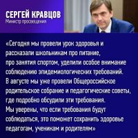 В трансляции урока приняли участие Министр просвещения Сергей Кравцов и руководитель Роспотребнадзора Анна Попова. Гостями трансляции стали двукратная олимпийская чемпионка, заслуженный мастер спорта России Анна Богалий, диетолог Юлия Бастригина и председатель Всероссийского общественного движения «Волонтёры-медики» Павел Савчук.